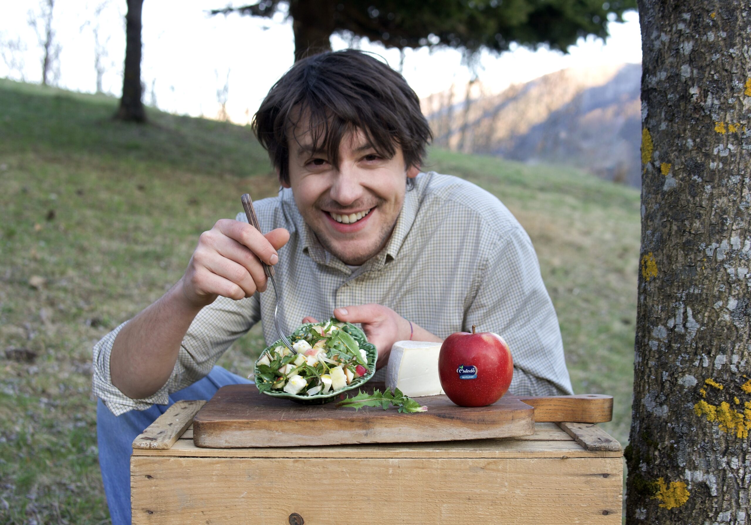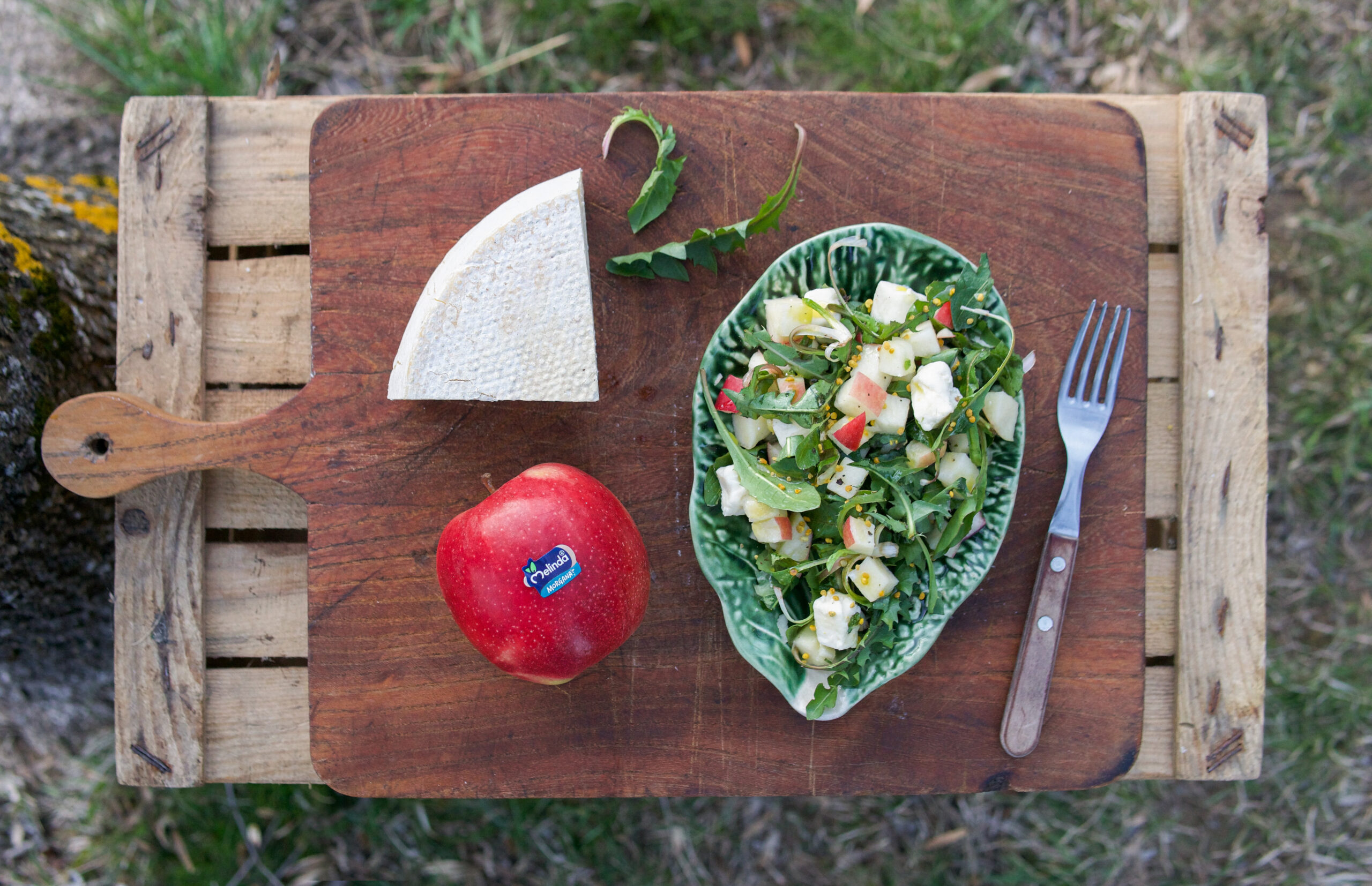 Tagliate il formaggio a cubetti e a seguire la mela, sempre a cubetti