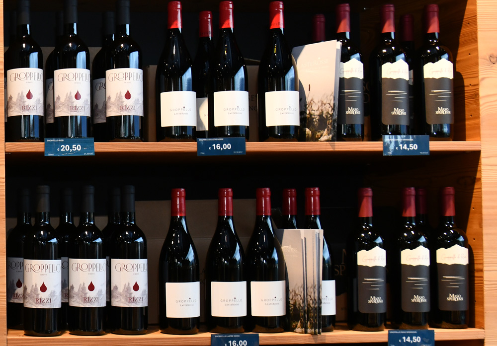 La cantina propone una selezione delle migliori etichette del territorio trentino. Dalle bollicine Trento DOC ai vini bianchi e rossi locali, fino al Groppello, vitigno eroico della Val di Non coltivato sui ripidi pendii soleggiati che scendono verso il Lago di Santa Giustina, per un’esperienza di gusto completa e inconfondibile.